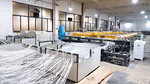 33,000 米²的设施,配有内部编织和浸渍固化生产线。 高强度 GFRP 网的年产能为 2000 万 m²。 采用绿色、节能、智能的生产理念。 监控张力、涂层拾取和固化曲线的控制。 每批的孔径、重量和附着力一致。